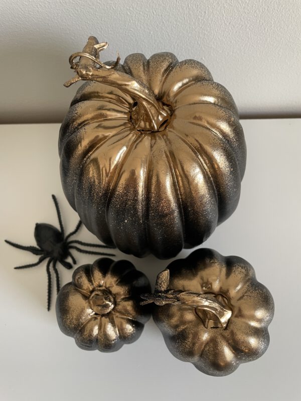 Skapa Halloween stämning med lyxiga pumpor. OBS! Spindlar ingår ej